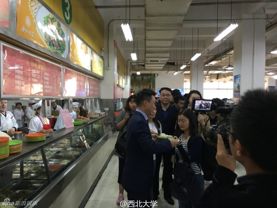 4月19日,康辉到西北大学开见面会,他与学生一同在食堂吃早餐,小笼包等食物简朴。