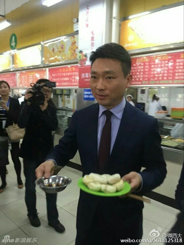 央视主持康辉现身西北大学 食堂吃小笼包简朴