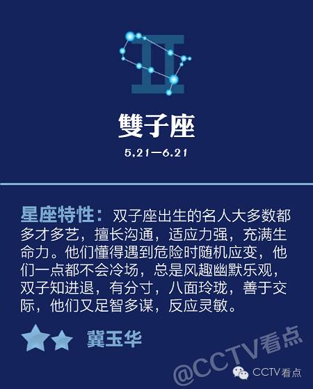 双子们的头脑灵活,口才了得,做主持人或者播音员都会很顺利。