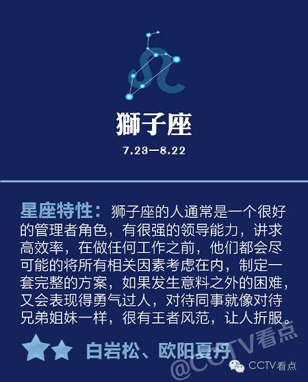 作为一个霸气外漏的狮子,最不喜欢看别人脸色,有一定的专业技能和人际关系,比较适合做导演。(霸气侧漏白岩松!)