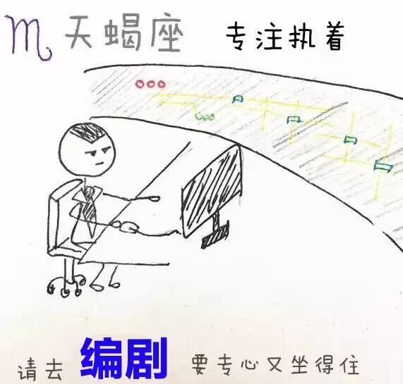 天蝎座有绝对的逻辑思维与专心,而且还有策划管理的优点,剧务和编剧都是很适合的。